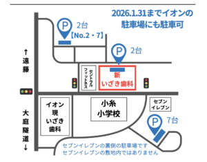 いざき歯科クリニックの移転後の駐車場についてのご案内です。